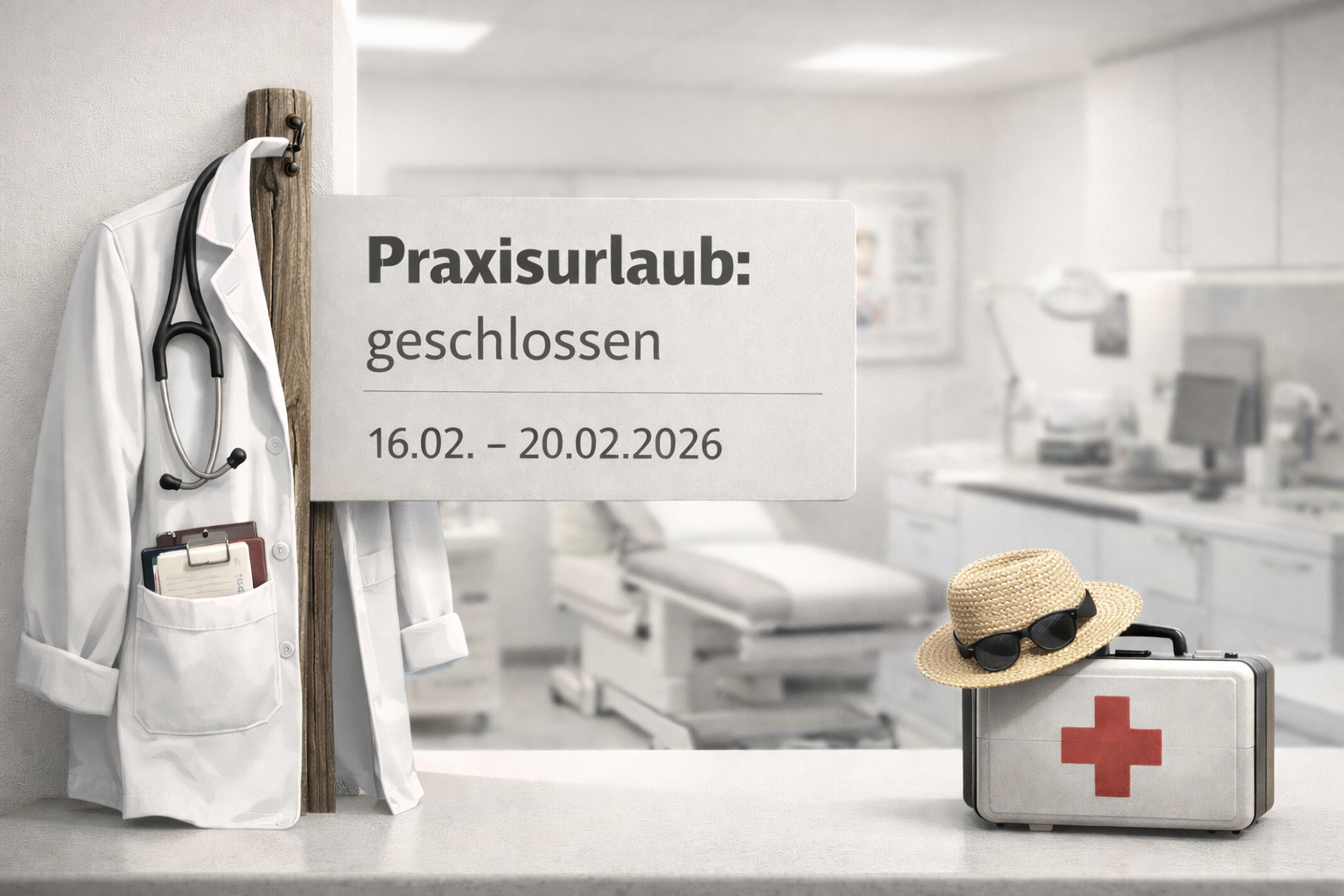 Unsere Praxis bleibt von Montag, den 16.02.2026 bis einschließlich Freitag, den 20.02.2026 geschlossen.